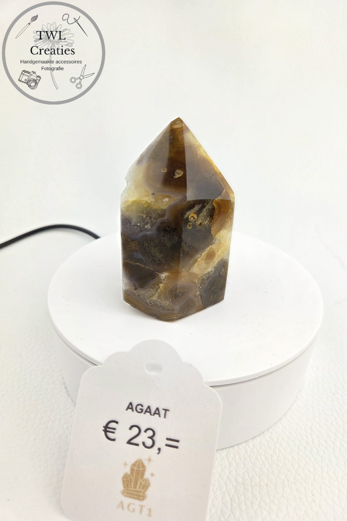 Agaat is een bekende edelsteen met prachtige lagen en patronen. Het is een aardende en stabiliserende steen die rust, balans en zelfvertrouwen ondersteunt.