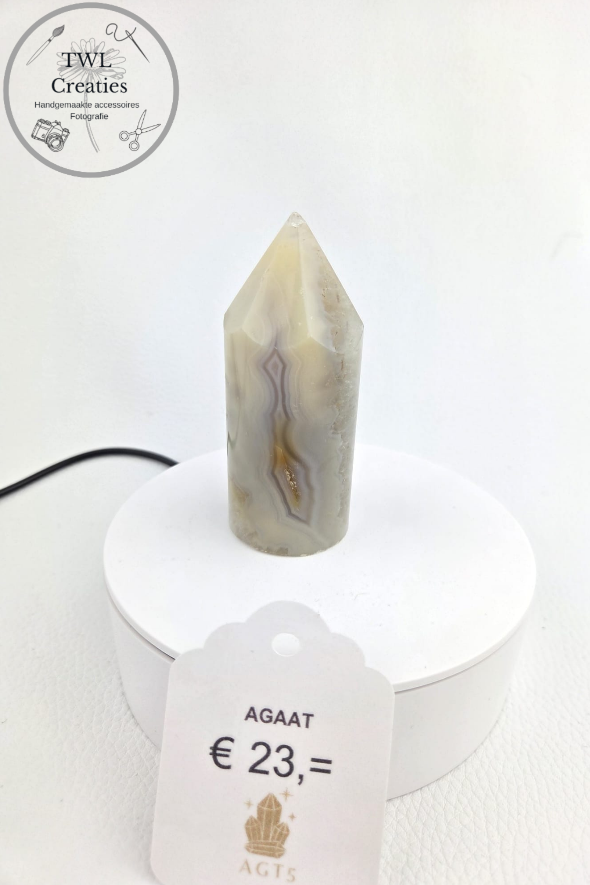 Agaat is een bekende edelsteen met prachtige lagen en patronen. Het is een aardende en stabiliserende steen die rust, balans en zelfvertrouwen ondersteunt.